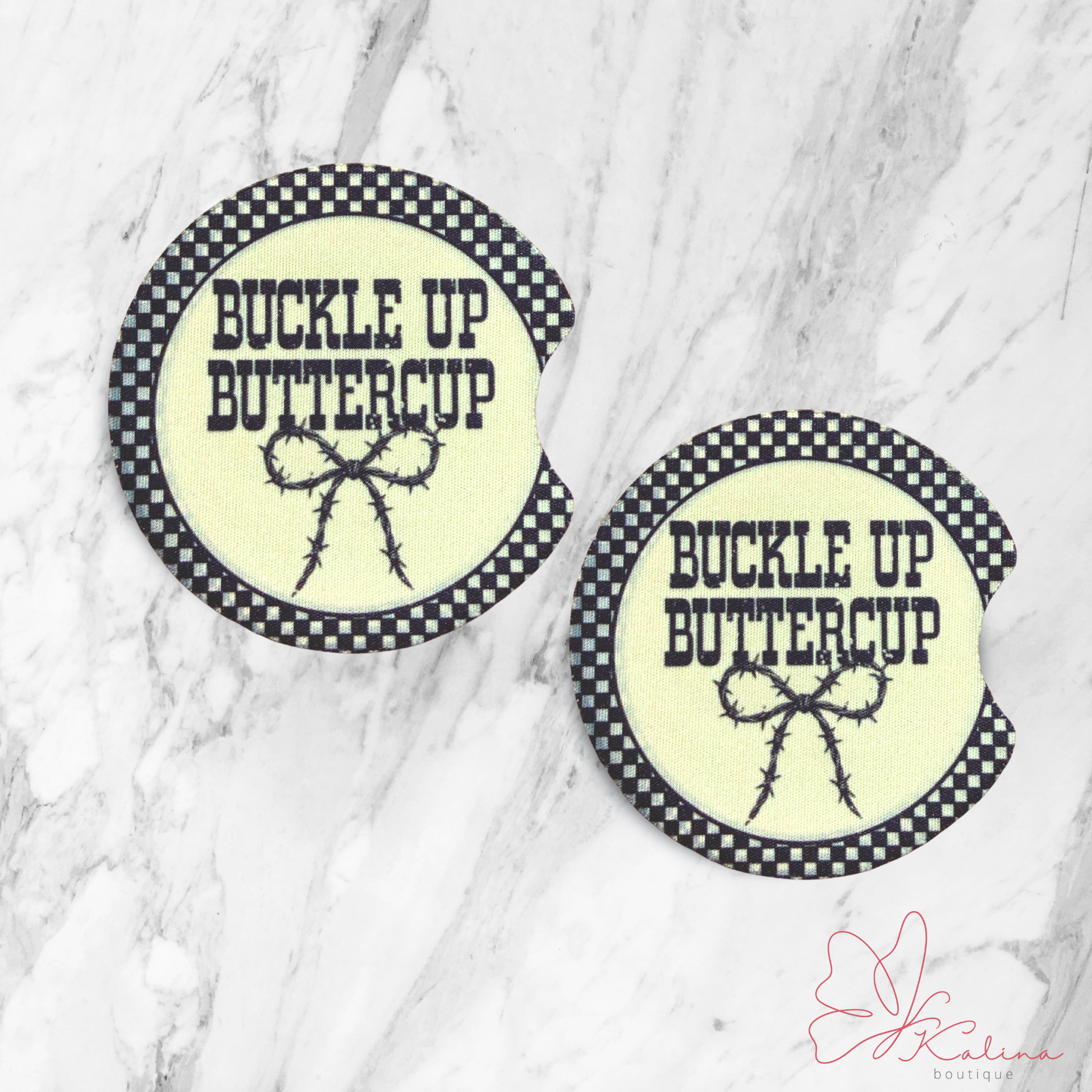 Keep your cup holders clean and cute with these playful Buckle Up Buttercup car coasters! Durable, with an easy notch for quick removal, designed to fit most vehicles. They’re the perfect mix of sweet and sassy. A fun little gift for friends, sisters, or anyone who loves to ride safe in style.