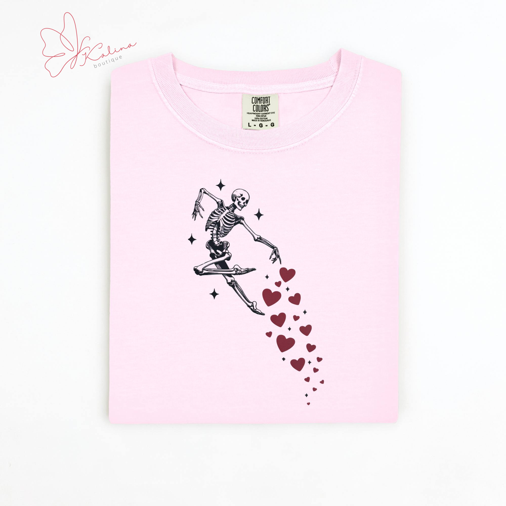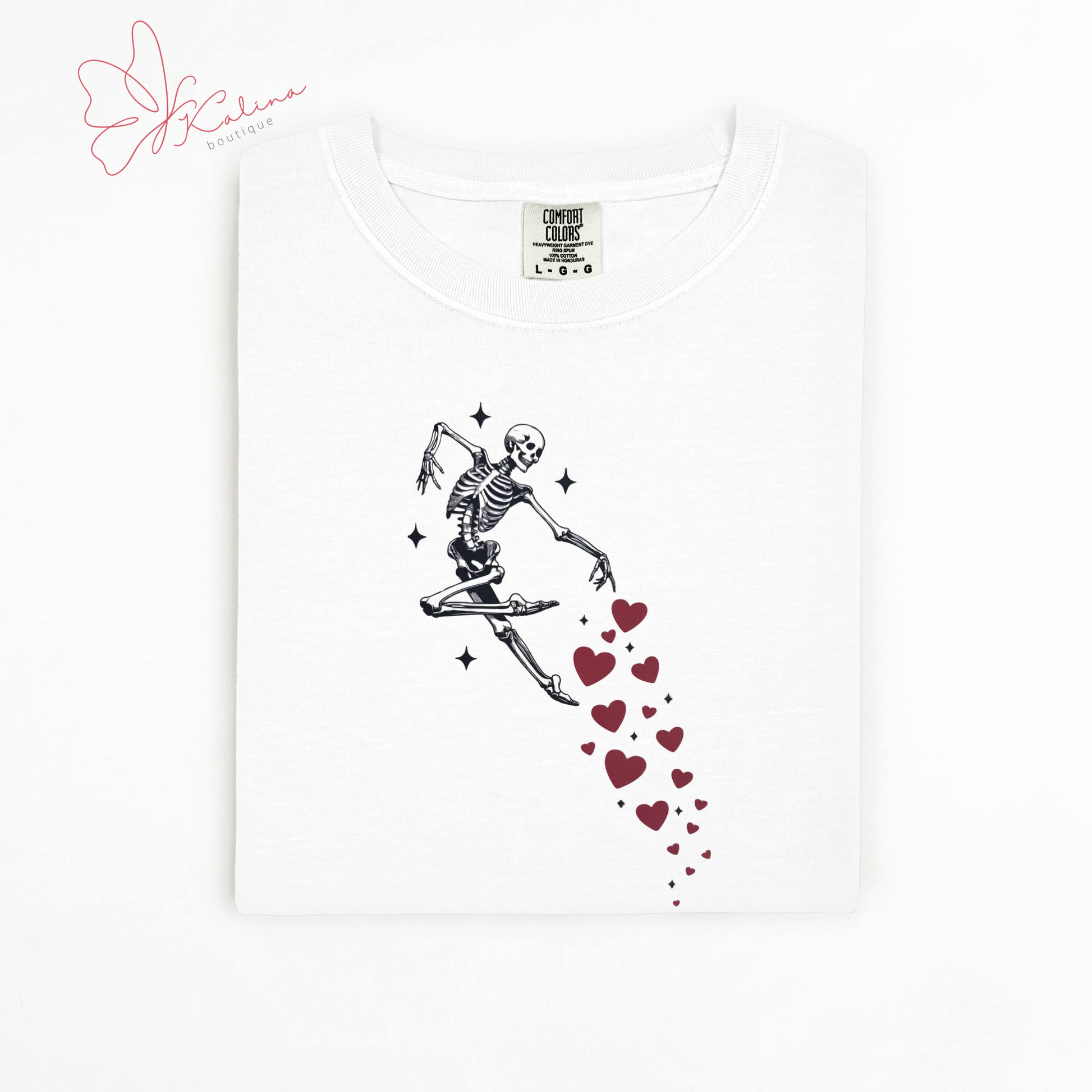 This playful sweater featuring a jumping skeleton, frozen mid-leap, with bright red hearts trailing behind for the perfect mix of spooky and sweet. It’s a fun twist on classic Valentine’s style—made for anyone who loves to stand out while still feeling festive. Cozy, eye-catching, and easy to style, this sweater pairs effortlessly with jeans, skirts, or layered looks for a unique holiday outfit that’s anything but ordinary. Perfect for Valentine’s Day and beyond.