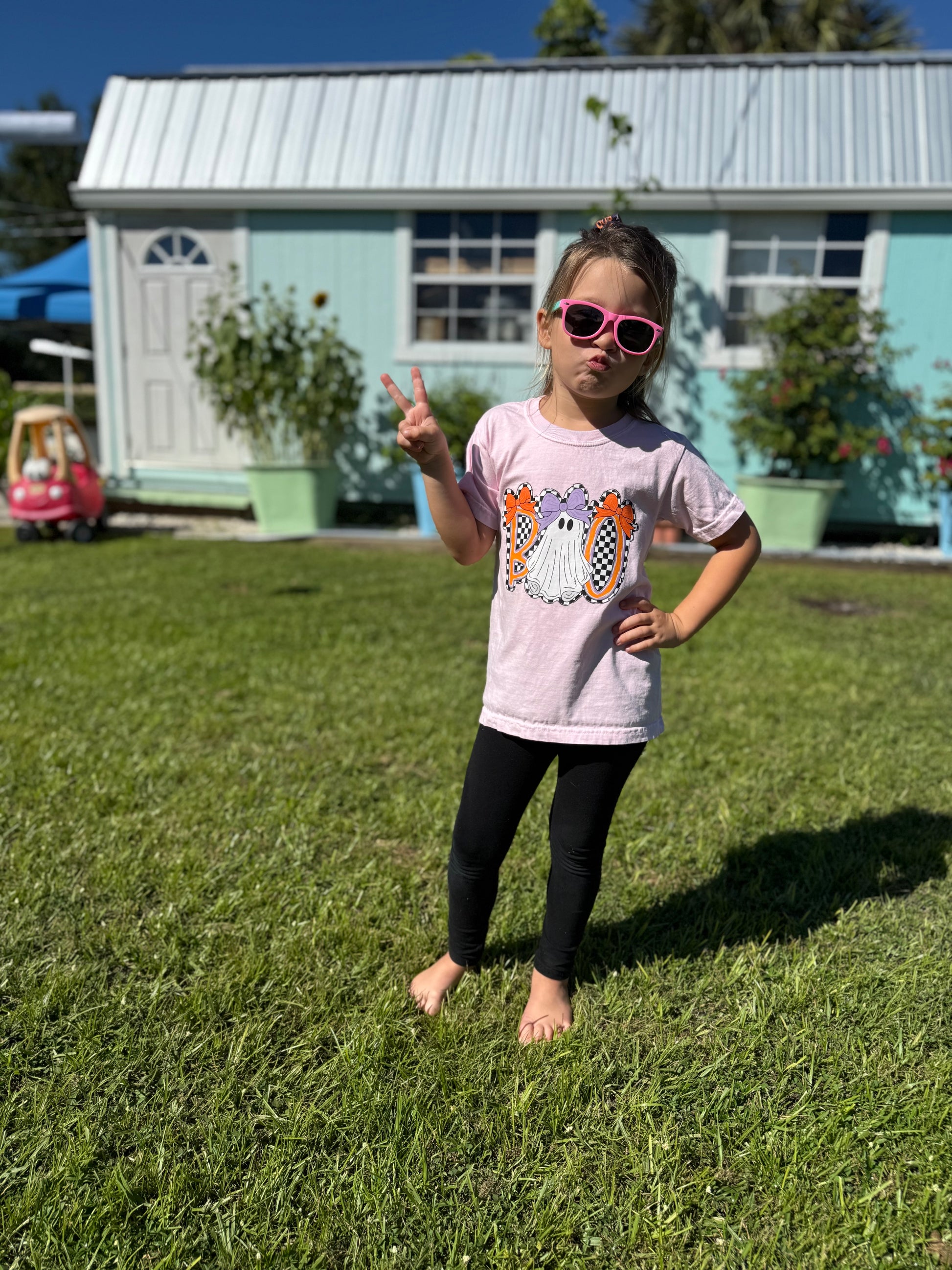 Let your little one celebrate spooky season in style with this adorable BOO! Halloween t-shirt! Featuring a playful ghost surrounded by festive fall colors and fun patterns, this tee is perfect for everything from pumpkin patch adventures to Halloween parties — or just showing off their seasonal spirit.