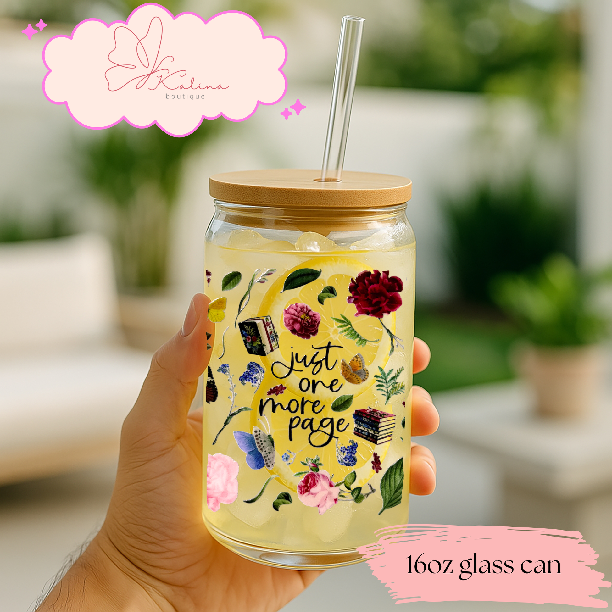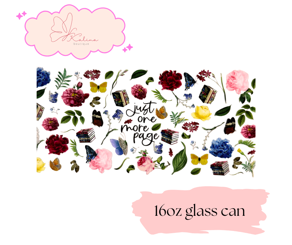 For the book lovers who can never stop at one chapter. 📖✨ This 16oz glass can features a cozy floral and book-inspired design with the phrase “just one more page”, making it the perfect companion for reading sessions, book club nights, or quiet mornings. Ideal for iced coffee, tea, or your favorite cold drink, it comes with a natural bamboo lid and reusable glass straw for an elevated, eco-friendly touch. A must-have for readers and a thoughtful gift for any bookish soul.